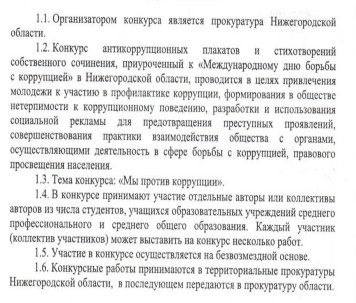 Положение о конкурсе творческих работ к Международному Дню борьбы к коррупцией в Нижегородской области.
