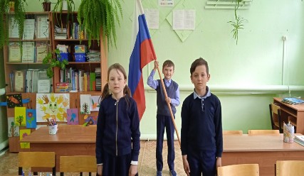Сегодня 25.04.2022г. учебный день начался с поднятия Флага РФ и прослушивание Гимна РФ